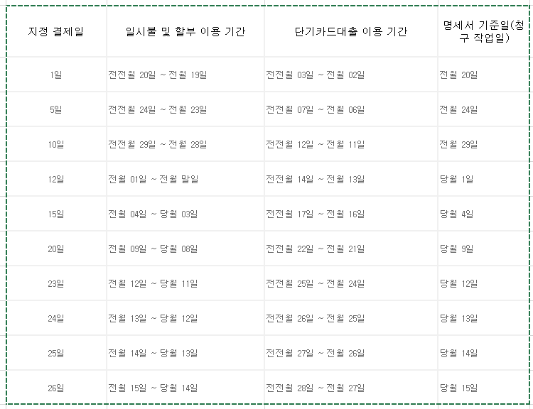 2020/10/05 - [정보한컵] - 하나카드 결제일별 이용기간 정리
