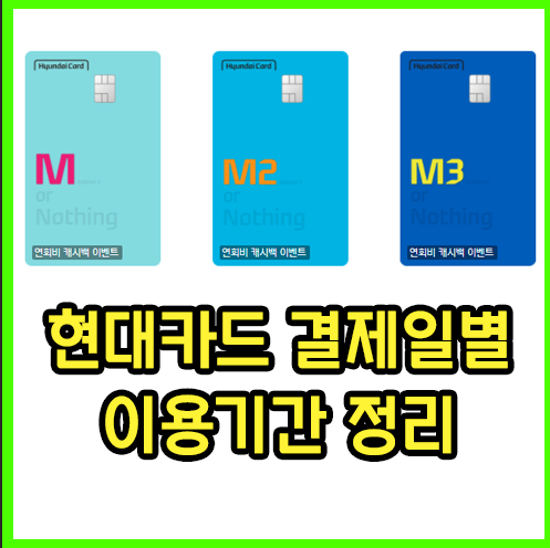 하지만 늘상 그렇듯 신용카드를 사용하게 되면 월급 이상의 금액을 무리하게 사용하는 경우가 있어 저는 결제일, 그리고 사용금액에 유의해서 카드를 사용하고 있는데 먼저 현대카드의 결제일별 이용기간을 정리해 보겠습니다.