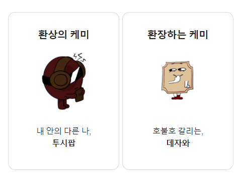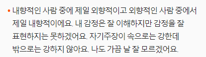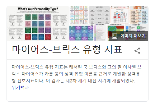아무튼 재미로 한 번쯤 해볼 만하며, 그래도 MBTI 테스트를 바탕에 둔 간단한 테스트다 보니 어느 정도는 참고할만한 듯하다.