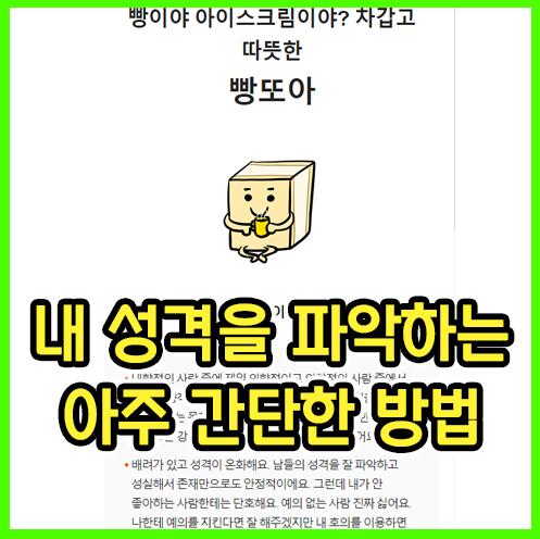 결론부터 말하자면, 내 성격유형은 차갑고 따뜻한 '빵또아'로 나왔는데 놀랍게도 필자의 최애 아이스크림은 빵또아이며, SPTI를 통해서 본 내 성격도 비교적 정확했다.