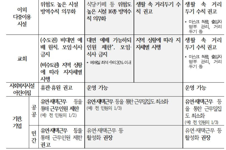 결국, 현행 2단계 + 고위험 시설을 관리, 위험도가 높은 시설이나 젊은 층 중심의 위험도 높은 활동에 대한 방역조치를 추가 도입하기로 한것입니다.