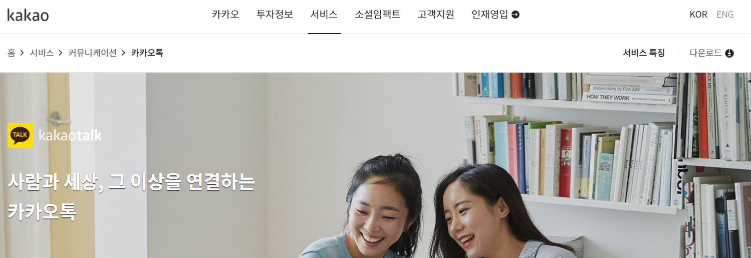 카카오톡 PC버전을 다운로드 하기 위해서는 일단 카카오톡 공식 홈페이지에 접속하도록 하겠습니다.