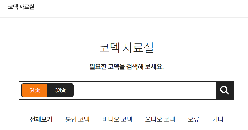 역시나 대한민국 1위 동영상 플레이어 답게 코덱 자료실도 따로 운영을 하고 있으며, 필요한 코덱을 검색하면 바로바로 코덱을 무료로 다운로드 받을 수 있도록 해두었네요.