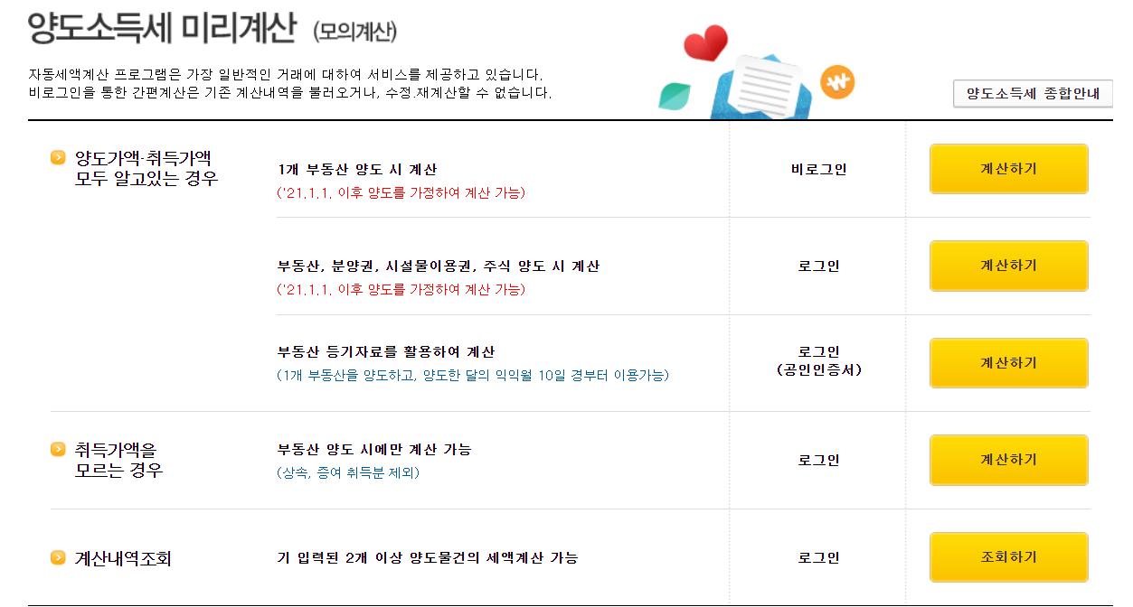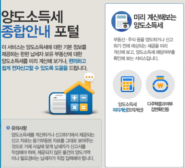 이렇게 국세청 홈페이지를 통해 빠르게 양도소득세를 자동으로 계산해 볼 수 있겠습니다.