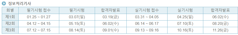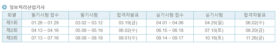 정보처리산업기사 시험은 정보처리기사와 다른데요, 간혹 산업기사와 기사를 헷갈려서 시험일정을 헷갈리는 경우가 있어 아래에 정보처리산업기사 일정도 정리해두었습니다.