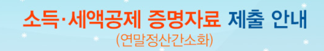 - 2021.1.20 ~ 2.28 근로자 간소화서비스에서 제공하지 않는 영수증 및 기부금, 의료비, 신용카드 공제 등 명세서, 신청서를 제출하는 공제증명자료 수집기간.