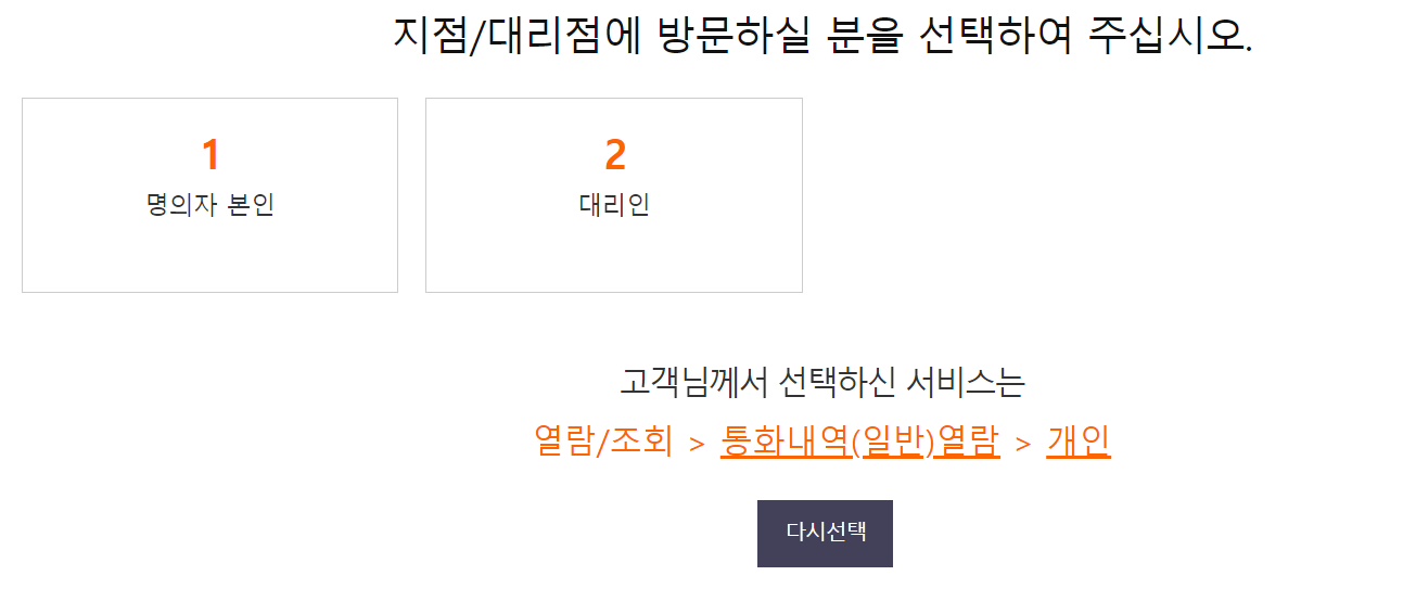 차근차근 본인에게 맞는 메뉴를 선택하신 후 , 휴대폰 통화내역 조회 신청서를 한부 작성해서 근처 SKT 지점이나 대리점에 방문하여 해당 서류를 제출해서 통화내역 열람 서비스를 활성화 할 수 있습니다.