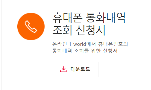 지점이나 대리점에 휴대폰 통화내역 조회 신청서를 내려 갈 시간도 없다! 하시는 분들은 온라인 T WORLD에서 바로 신청이 가능한데요, 이때에는 본인명의의 핸드폰만 가능하다는점을 알아두셔야 하겠습니다.