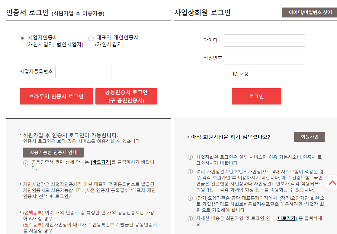 먼저 4대보험 미납내역을 조회하기 위해서는 공인인증서(공동인증서)가 반드시 필요합니다.