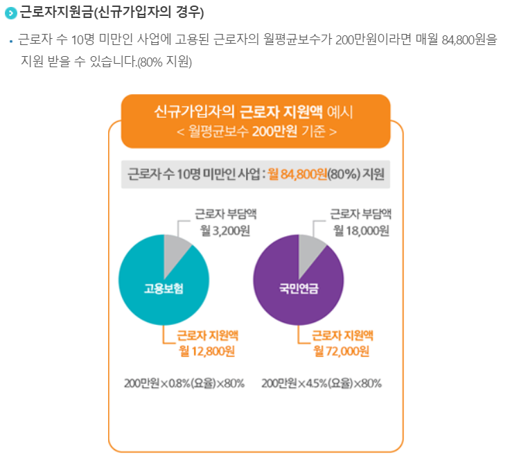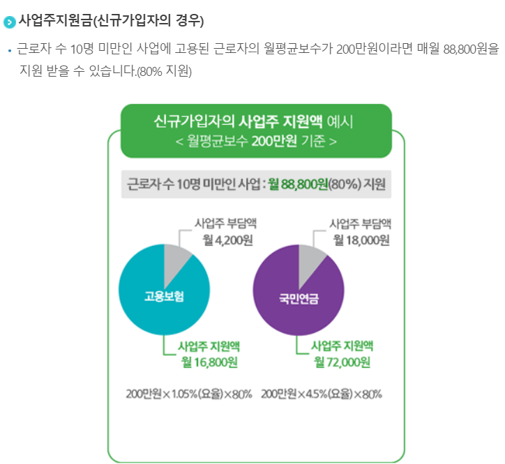 작은 영세 사업체를 운영하는 사장님, 그리고 근로자의 사회보험료의 일부를 국가가 지원해줌에 따라서 사회보험 가입에 따른 부담을 덜어주는 일종의 소상공인 지원정책이라고 보시면 되겠습니다.