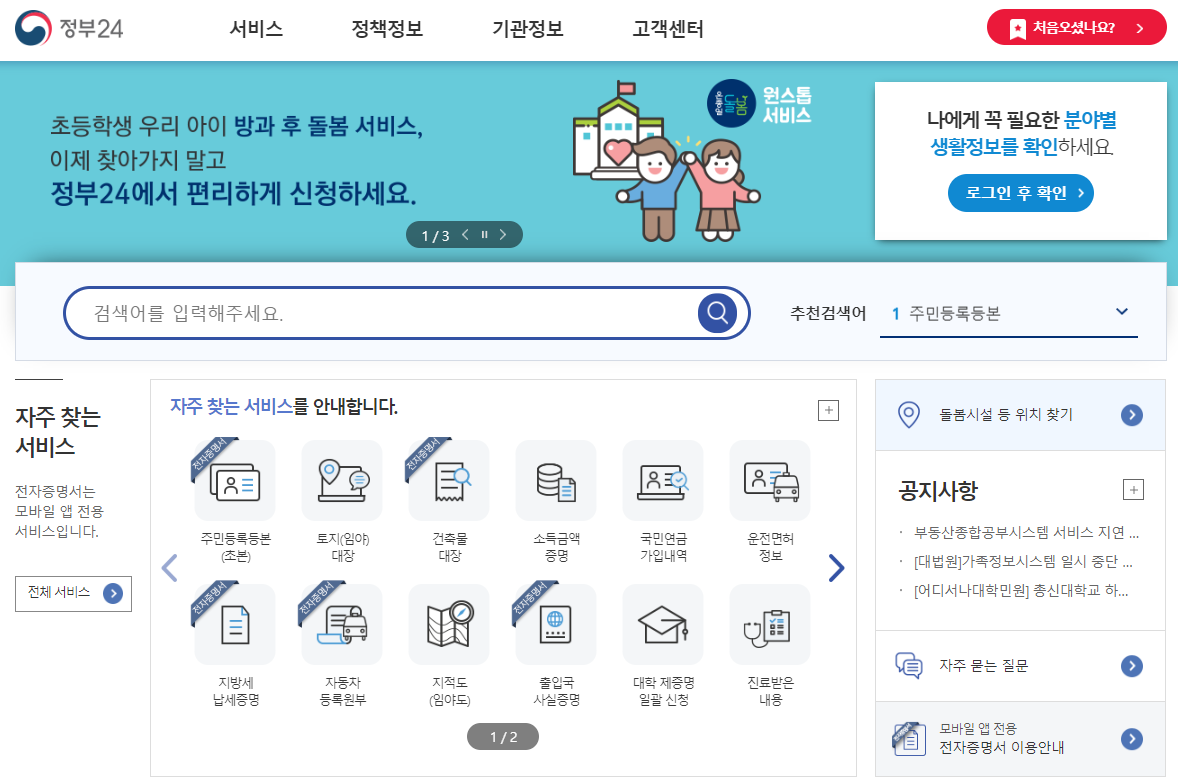 정부24의 편리한 서비스들