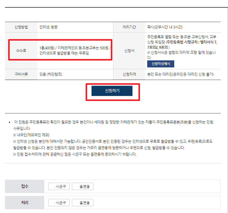 동사무소에 방문해서 주민등록등본을 발급하게 되면, 1통에 400원의 수수료가 발생하죠.