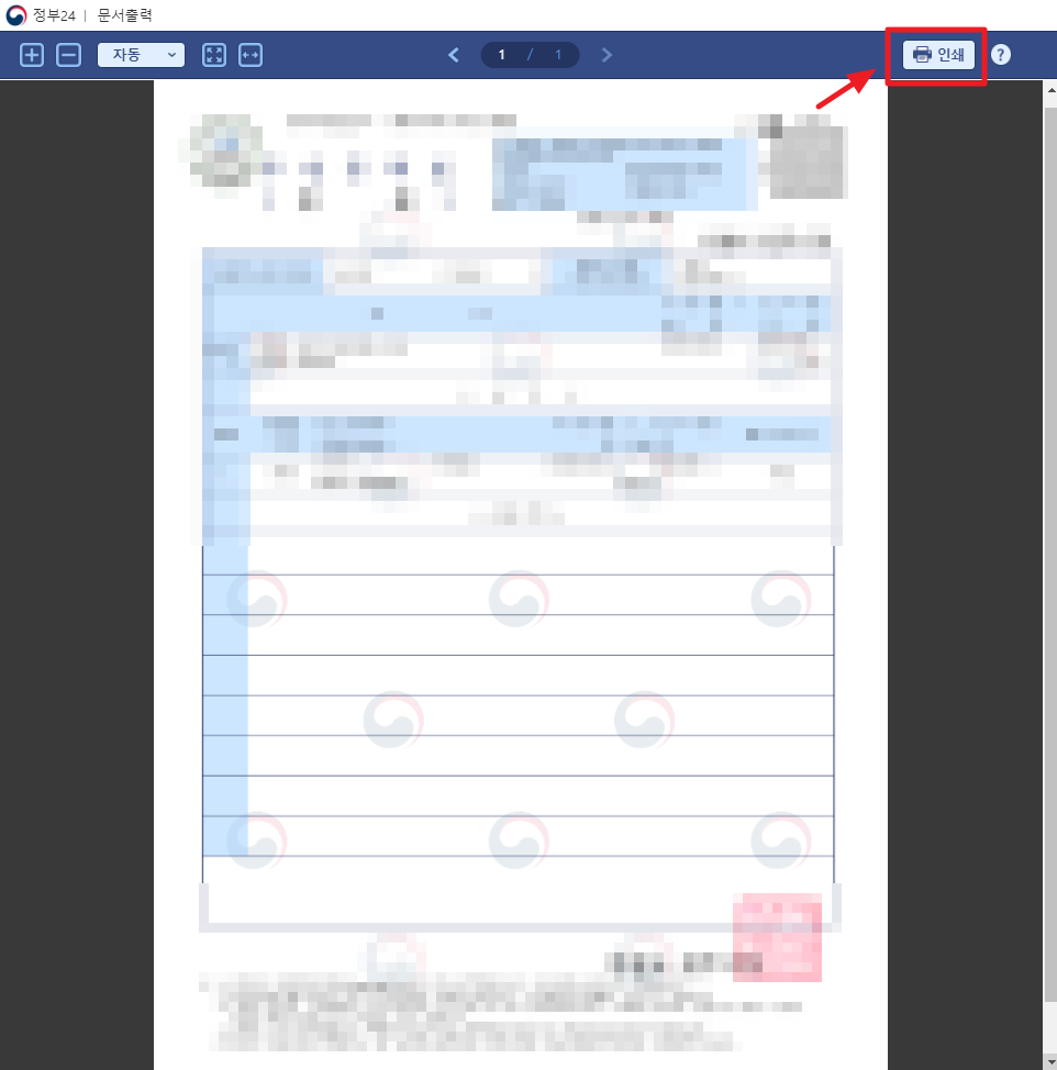 '인쇄' 버튼을 눌러주어 주민등록등본을 프린트해서 필요한곳에 제출하시면 되겠습니다.