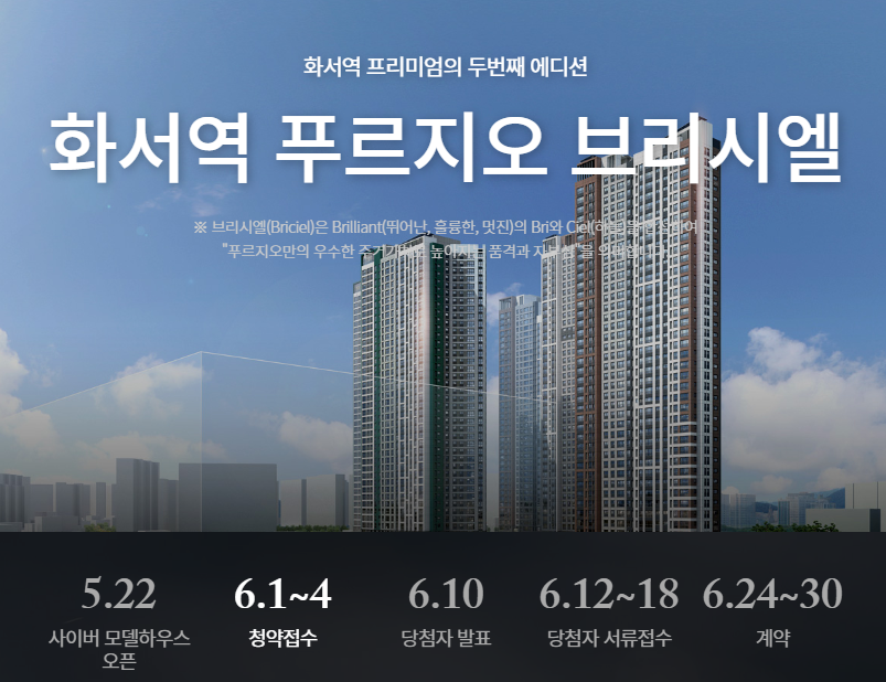 2일인 오늘부터 경기도 수원시 정자동의 화서역 푸르지오 브리시엘 오피스텔이 1순위 청약에 나섰는데요, 당첨자 발표는 6월 10일, 서류접수는 6월 12일 ~ 18일까지 입니다.