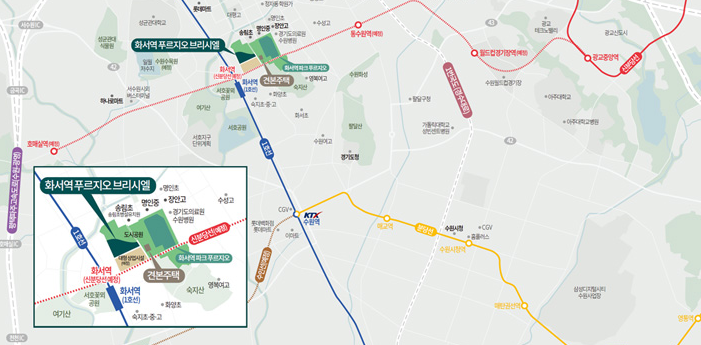 화서역 푸르지오 브리시엘 오피스텔은 더블역세권, 학세권, 숲세권, 몰세권, 복합환승센터등으로 다양한 호재가 있고 모든것을 도보로 10분이내 해결할 수 있다는 점에서 뜨거운 관심을 받고 있는데, 현재의 인프라도 괜찮은 편이지만, 향후 호재실현이 더 많이 남아 있는 곳으로 평가되고 있습니다.