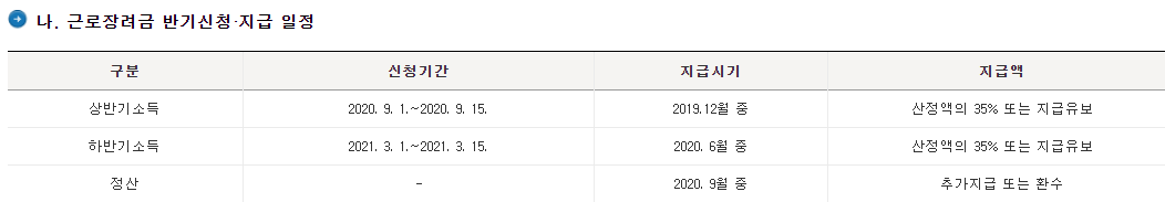 먼저 국세청에서 발표한 변경된 근로장려금 및 자녀장려금의 지급일은 다음과 같습니다.