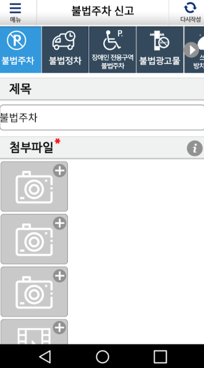 두 번째 스마트폰 앱을 통한 방법은 '생활불편신고' 어플을 다운로드하여 직접 불법주차 차량을 사진 촬영해서 신고하는 방법도 있습니다.
