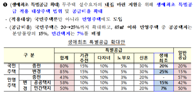 원래는 공공분양에만 있던 생애최초 특별공급을 민영주택, 재건축 및 재개발 아파트에도 생애최초 특별공급을 넣어볼 수 있습니다.