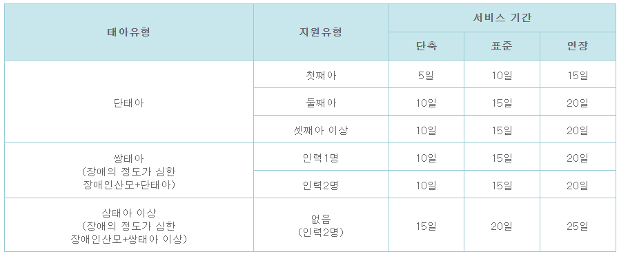 2. 지원기간 - 태아의 유형 및 지원 유형에 따라 건강관리사가 서비스해주는 기간이 달라집니다.