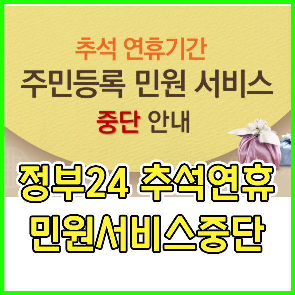 추석 연휴기간에는 정부24의 주민등록 인터넷 발급 민원 서비스가 한시적으로 중단됩니다.
