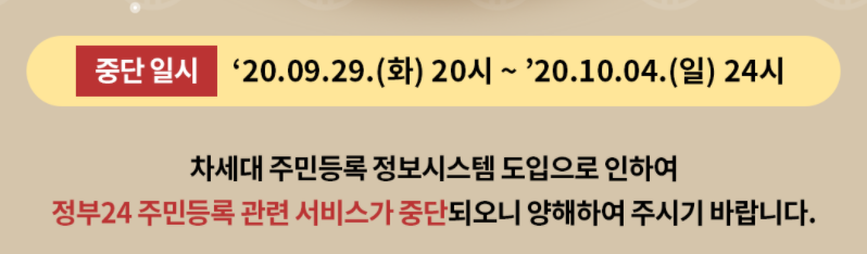 정부24를 온라인 주민등록 관련 민원 서비스 중단기간은 아래와 같습니다.