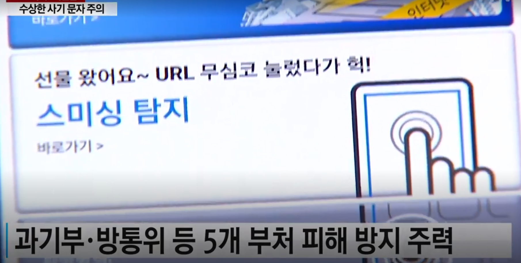 또한 방송통신위원회 에서는 한국정보통신진흥협회와 이동통신사 3사와 협력, 9월 22일부터 명절기간동안 사기문자 피해 예방 문자를 순차적으로 발송하다고 합니다.