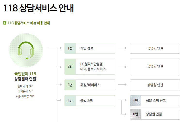 118 상담서비스 안내 < 고객광장 : 한국인터넷진흥원